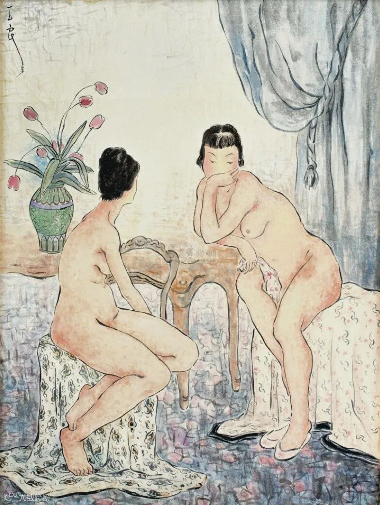 潘玉良 《双美娉婷》彩墨纸本 67.5×50cm 1963年 2021华艺国际春拍 图源雅昌