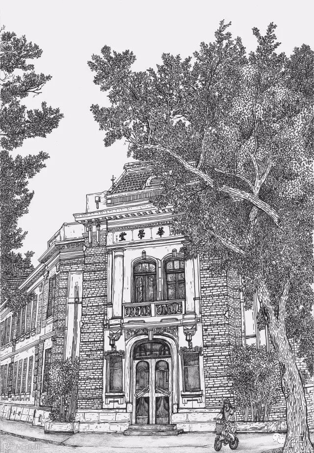从国画到油画,从彩色到黑白,于婉莹正在逐渐形成自己的绘画语言,也在学习不同绘画语言的过程中不断摸索。线描和素描都是东西方绘画语言中的经典表达方式,前者写意,后者写实,然而于婉莹并未“屈从”它们,反倒是“融合”了它们,以一个清华学子的视角,营造出了一个属于这个时代的人文和艺术的清华校园。