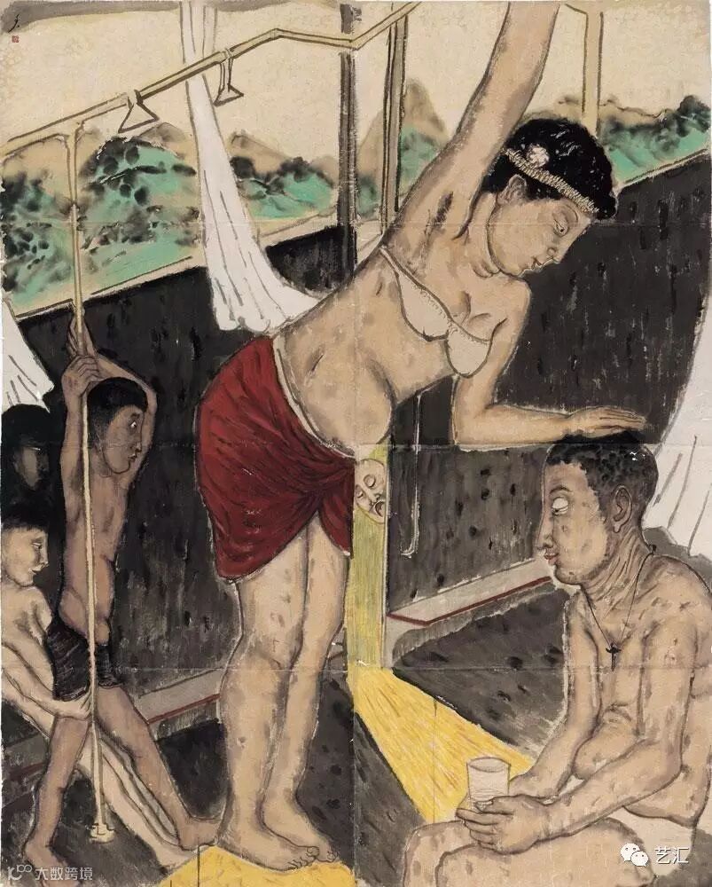 雷子人喜欢用国画来画身体,他画的是人体还是裸体?表达的是优美还是色情?对于这些问题,我们似乎很难用非此即彼的方式来回答,因为雷子人并不是在写真的意义上来画身体。只有在写真的意义上,于连的区分才有效。正因为如此,人体摄影可能比春宫图更色情,而雷子人的画却比春宫图更优美。雷子人通过适度的变形,消解了身体的真实性,由此身体就由有血有肉的真实存在转变成了适合表情达意的艺术符号。在雷子人的笔下,身体获得了高度自由,它们可以以任何方式出现在画面的任何地方,而不受真实时空和解剖学的限制。