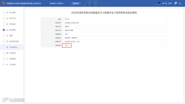 考生提交报名后,可再此处查看审核的进度;