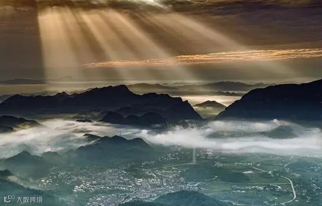太阳在朝霞的迎接中,露出了红彤彤的面庞