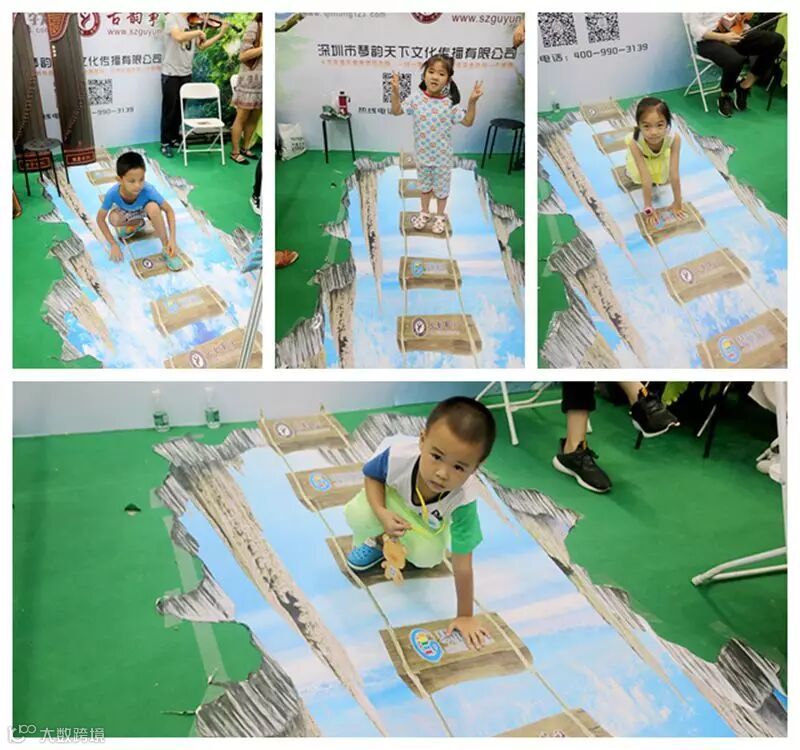 孩子们似乎对展区内的“3D空中索桥”特别感兴趣,纷纷在桥上一试身手,摆出的各种造型,有模有样。