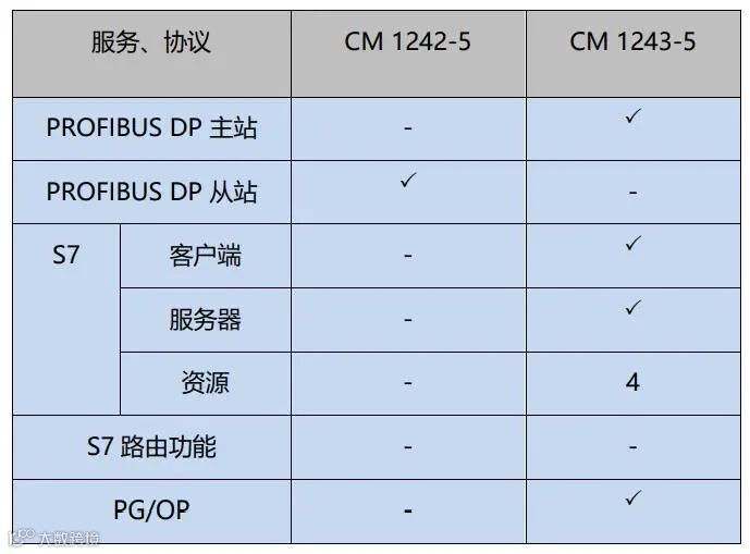 下面的表格我们可以看到 S7-1200 的两款 PROFIBUS CM 模块的功能区别。