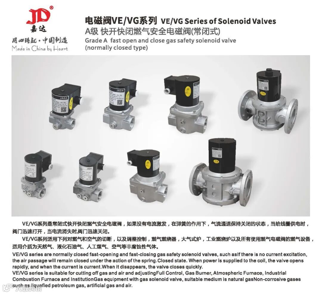 中山市嘉达电磁阀有限公司是集设计、制造、销售于一体的电磁阀专业生产厂家、具有精良的机械加工和测试设备、先进的生产工艺、完备的测试技术、高素质的员工队伍。产品系列广泛适用于机械、军工、化工、石油、冶金、医疗、纺织、环保等行业的各种液、气体管路的自动控制。