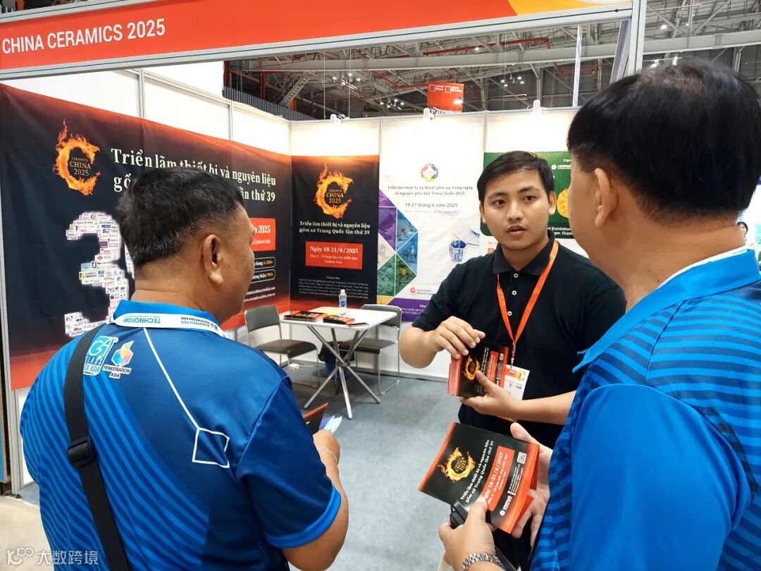 在越南展会现场,第39届中国国际陶瓷工业展的展位吸引了过往观众的关注和驻足咨询。新之联的推广人员用满腔热情和细致讲解,向每一位到访者传递着展会的最新资讯与亮点。他们耐心答疑,积极互动,成功营造出热烈而积极的交流氛围,使展位前人来人往,咨询不断,起到了很好的宣传推广效果,进一步提升了展会在越南陶瓷行业的知名度和影响力。