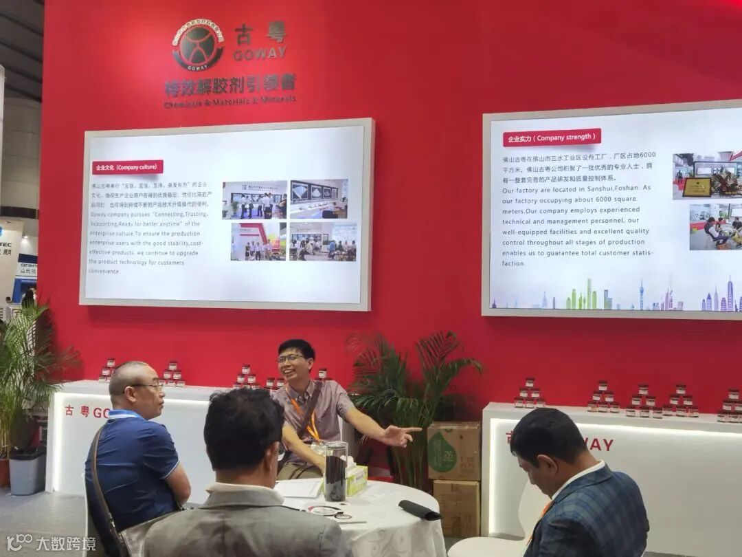 在本次展会上,富威顺主推坯体增强剂、解胶型增强剂、陶瓷解胶剂、甲基、水煤浆添加剂。其中,坯体增强剂为白色或浅灰色粉末,用于增加陶瓷坯体粉料压制生坯时的强度和韧性,确保砖坯进窑前,不易破裂,替代CMC且性价比优于羧甲基纤维素钠;解胶型增强剂为棕色粉末,增加陶瓷坯体强度和韧性的同时能减少对泥浆流动性的影响。