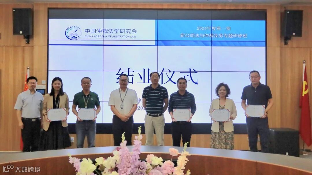 上海仲裁委员会法律顾问马思祺等学员代表在仪式上发言,表示在新《公司法》出台后即时举办本次培训意义重大,此次培训课程设置合理,对仲裁实务与律师业务均具有较强的指导作用,受益匪浅,同时感谢国浩海南给予培训的大力支持。彭真明教授、崔新民副处长和国浩海南管理合伙人王龙奎共同为学员颁发结业证书并合影留念。
