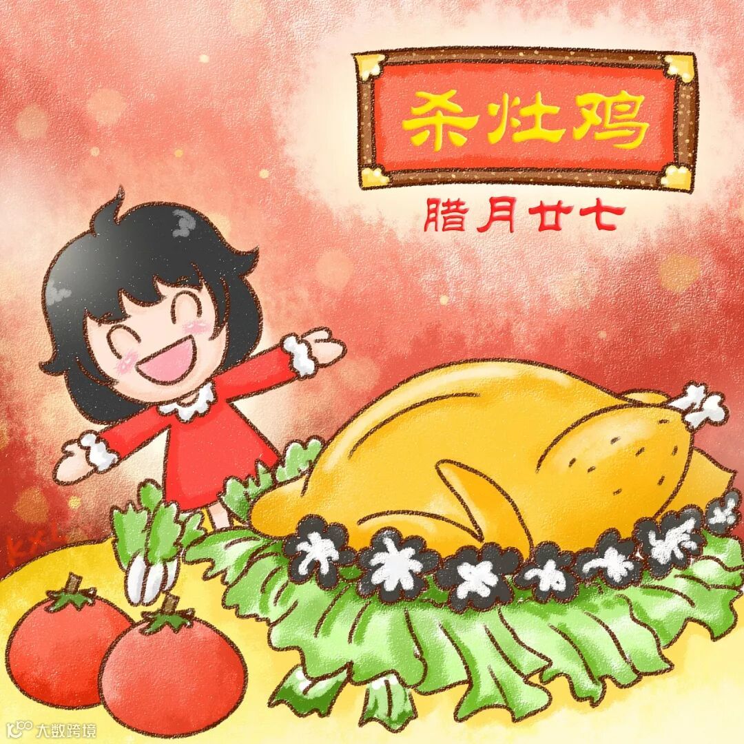 “杀年鸡”是取谐音,“鸡”同“吉”,有吉利、吉祥如意的意思。过去这一天做好的鸡,要放到除夕年夜饭上吃,当晚还不能吃完,要留一点。春节期间,天天都要在餐桌上见到鸡,这样才算吉祥。