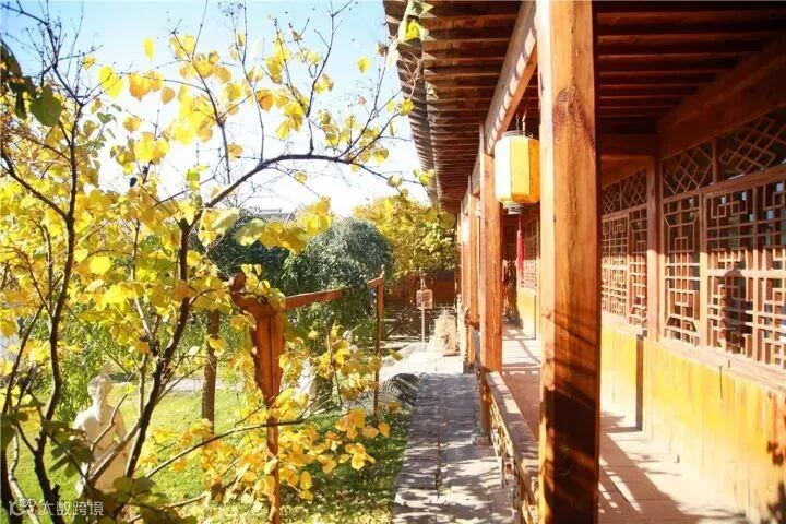 一处处旅游景区变成明亮的金黄色