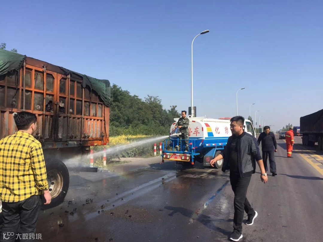 2019年9月29日上午10:40左右,沿山公路南绕城出口50米处有一辆载满煤炭的外地牌照重型货车着火,路过的西夏陵区管理处职工薛虹见状立即带着车上的备用灭火器和路过司机一起救火。因货车左后轮胎着火,火势迅速蔓延,车上的煤碳也开始冒烟,眼见火势无法控制,薛虹在拨打119的同时及时联系了西夏陵文保公司,文保公司在接到求助电话后,立即派遣工作人员及洒水车赶到现场,在消防车到达之前熄灭了大火。同时,西夏陵职工和路过的森林消防工作人员对过往车辆进行指挥疏导。