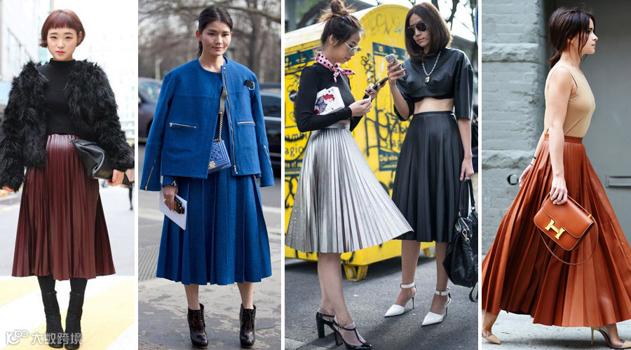 稍留意下你便会发现,近两年那些金属感面料的百褶裙大肆流行起来。但困惑也随之而来:反光面料特别凸显腹部!所以更建议选择略长的上衣,遮掉赘肉哦!