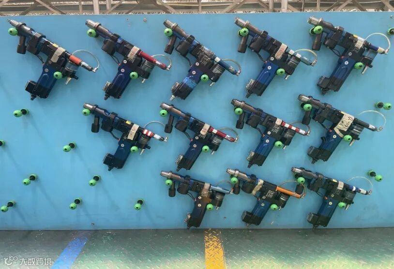 整齐的工装排布,规律的工具摆放,在成千上万个零件待装配的飞机部件装配现场,航空人向来严格要求自己,规范整洁的场景随处可见,这样的整洁美,不得不说他们真有“强迫症”!整齐排列的工具是航空人完成每个高精度孔加工的同心钻,每种孔径都用不同的颜色区分,整齐的摆放让使用者一目了然,不仅做到了工具共享而且还可以直接拿到自己需要孔径的工具,航空人的工具与航空人一样整齐划一,它们就像一把把“枪”整齐站队等待“士兵”出击。
