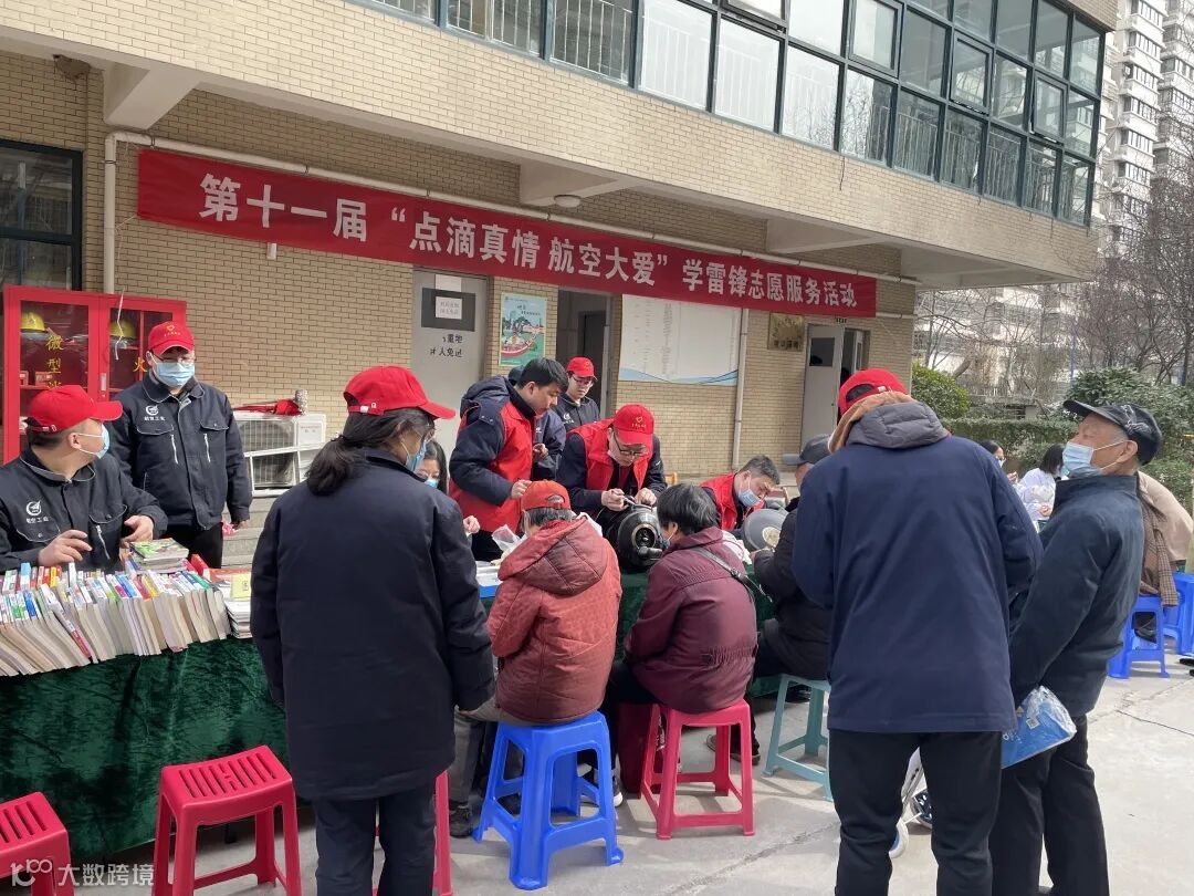 进社区:30余名志愿者在航飞社区为公司职工及家属提供电器维修,医疗服务,图书捐赠、交流共享,儿童成长测评,反诈知识普及等。维修各类家用电器90余项,西安交大一附院东院医务工作者为职工家属提供医疗服务200余人次,收到捐赠图书300余册,互换共享图书100余册,为十余名儿童进行成长测评,青年志愿者为社区百余名职工家属普及反诈知识,指导职工群众安装国家反诈中心APP。