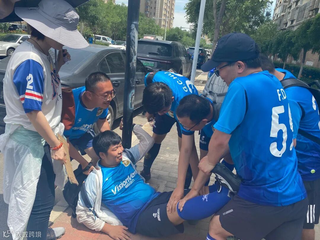 吃饭路上,守门员抽筋了,大概也是难得一见~~~![]()