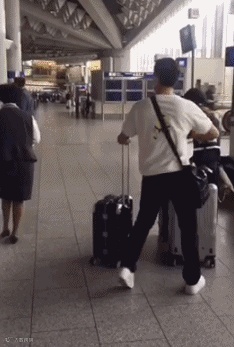 五月份隆诗两人同行参加袁弘婚礼回程时,吴奇隆竟然在大庭广众下推着坐在行李箱上的刘诗诗,完全就是把她当小宝宝一样宠爱嘛~