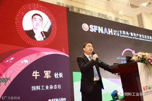 4月16日早8点,《饲料工业》杂志社社长牛军先生致大会开幕辞,他对与会嘉宾的到来表示热烈欢迎和衷心感谢,立志将“太阳鸟”打造成为专业学术交流承载平台,集聚行业智慧、探讨科技成果、交流创新技术、分享成功经验,为我国畜牧饲料行业的健康持续发展贡献绵薄之力。