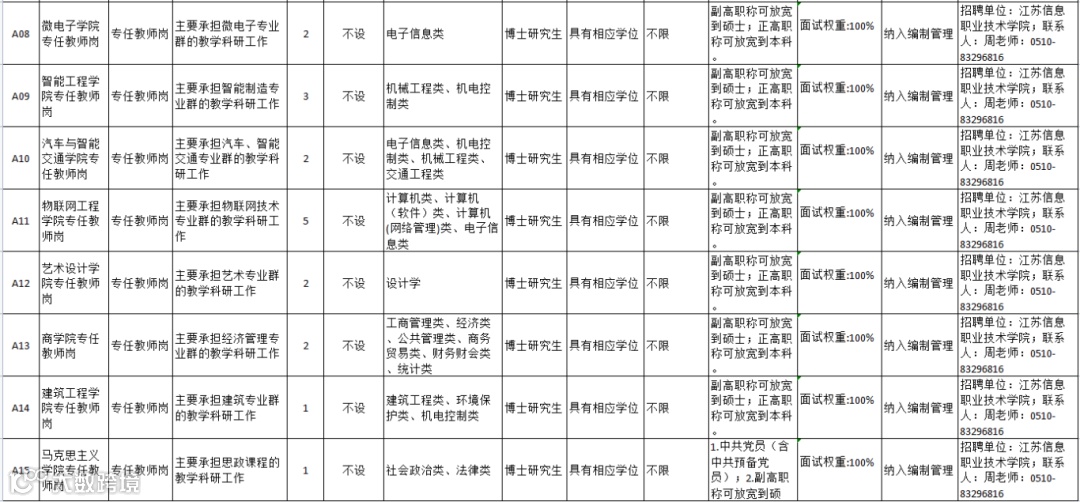 江苏信息职业技术学院人事处负责回答此次招聘政策咨询。