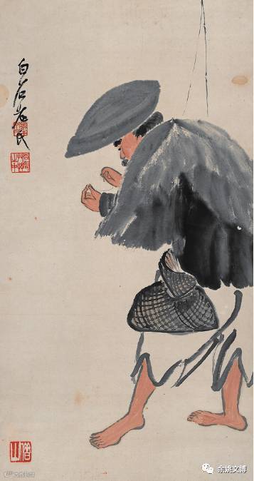 齐白石出身贫苦,早年学木工,兼习肖像画,并以卖画为生。中年拜胡沁园、王湘绮等为师,学习诗书画。经过 “ 五出五归 ” 的游历,眼界大开,技艺精进。定居北京后,受陈师曾影响 “ 衰年变法 ” ,创立 “ 红花墨叶 ” 一派。他的作品融民间艺术与文人画于一炉,为中国绘画艺术的传承与发展注入了新的文化内涵。