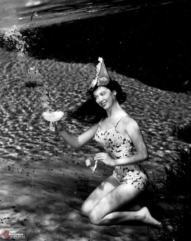 自 1938 年,距今大约 80 年前,水底摄影先驱 Bruce Mozert 已不断拍摄大量精彩的水底人像摄影,这里一系列早期作品,摄于佛罗里达州的 Silver Springs,不单是人像摄影,也特地加入一些看来超现实的创作,把“日常生活”如看报纸、BBQ等都放进水底摄影里,模特儿的专业演出当然应记一功,却也让大家看到,80 年前已经可以拍到这么好玩的作品了。