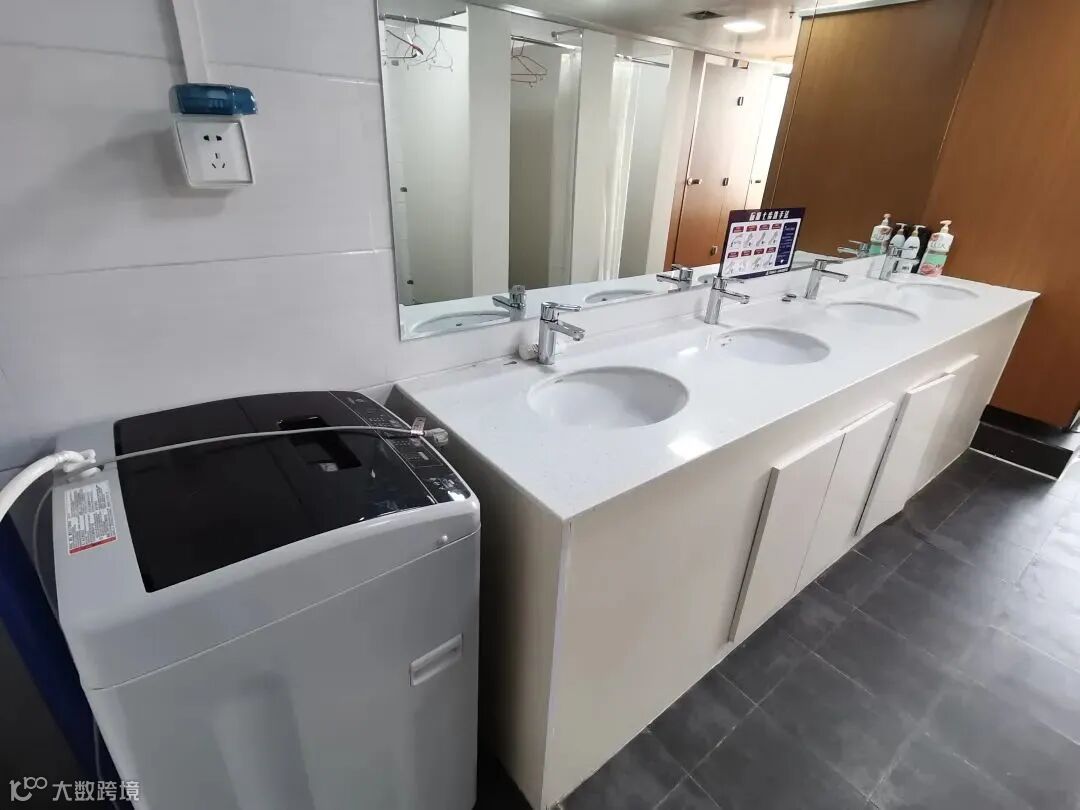 水房里还安装了同学们日常所需的洗衣机,和淋浴间。每个位置都有一个帘子保证了同学们的隐私。