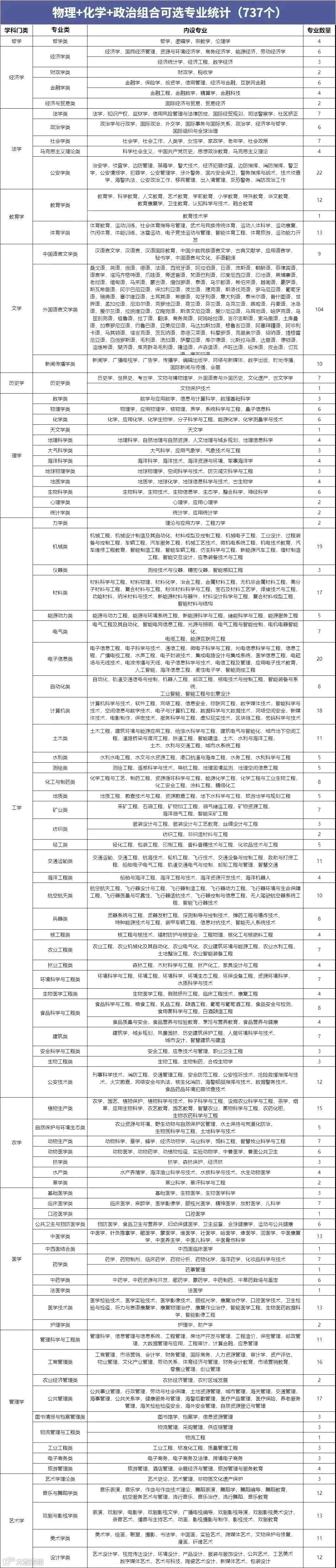 各位家长及同学们,新生报到已经完毕,报到结束后每个家庭都在面临着“新高考”的选科,“3+2+1”模式的新高考,对于每位同学来说未来可选择的专业更多种多样了。帮帮整理了一些组合专业的统计表,快来看看吧!