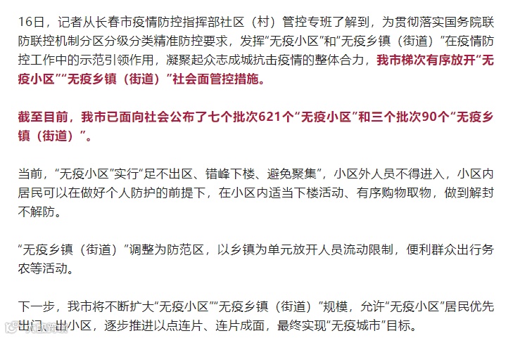 长春市将梯次有序放开