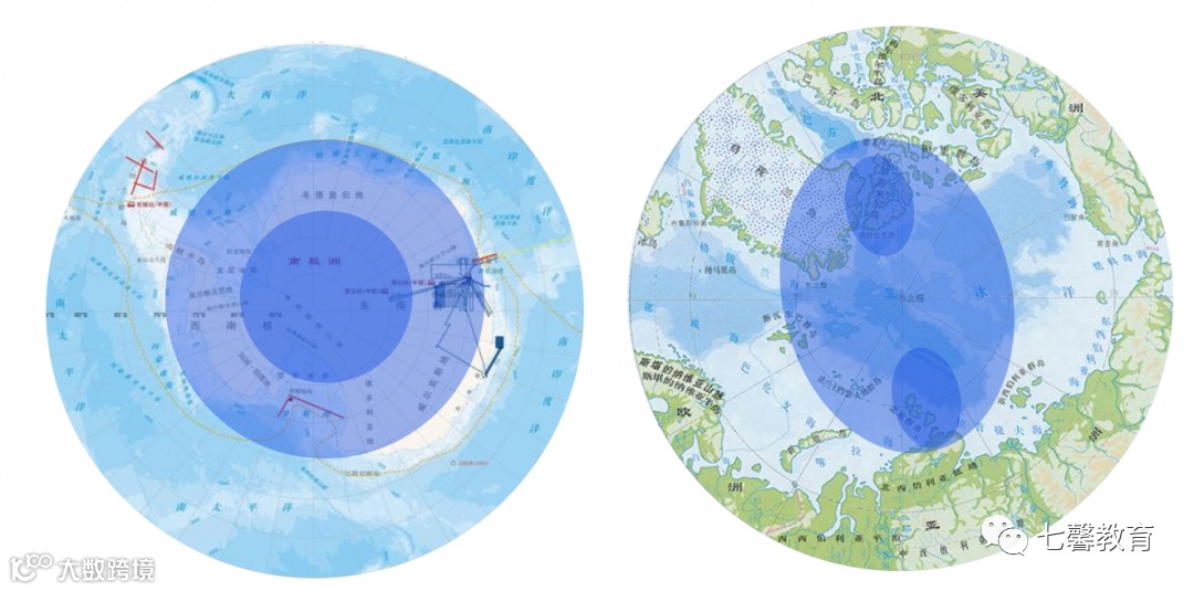 ①南极主要为大陆,海陆热力差异更为明显,陆地气温更低,地表冷高压强劲,使高空冷涡更稳定,而北极主要为海洋,气温较高,使得冷涡在周边陆地上更强,为多中心,形成分裂态势