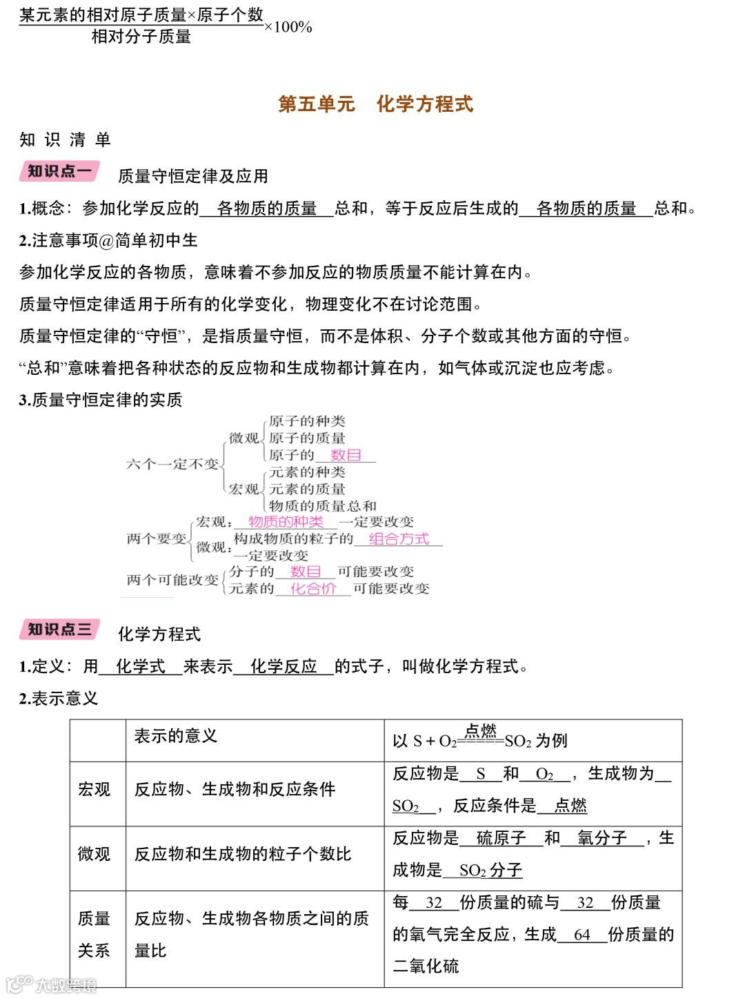 初中化学基本概念、知识全集合