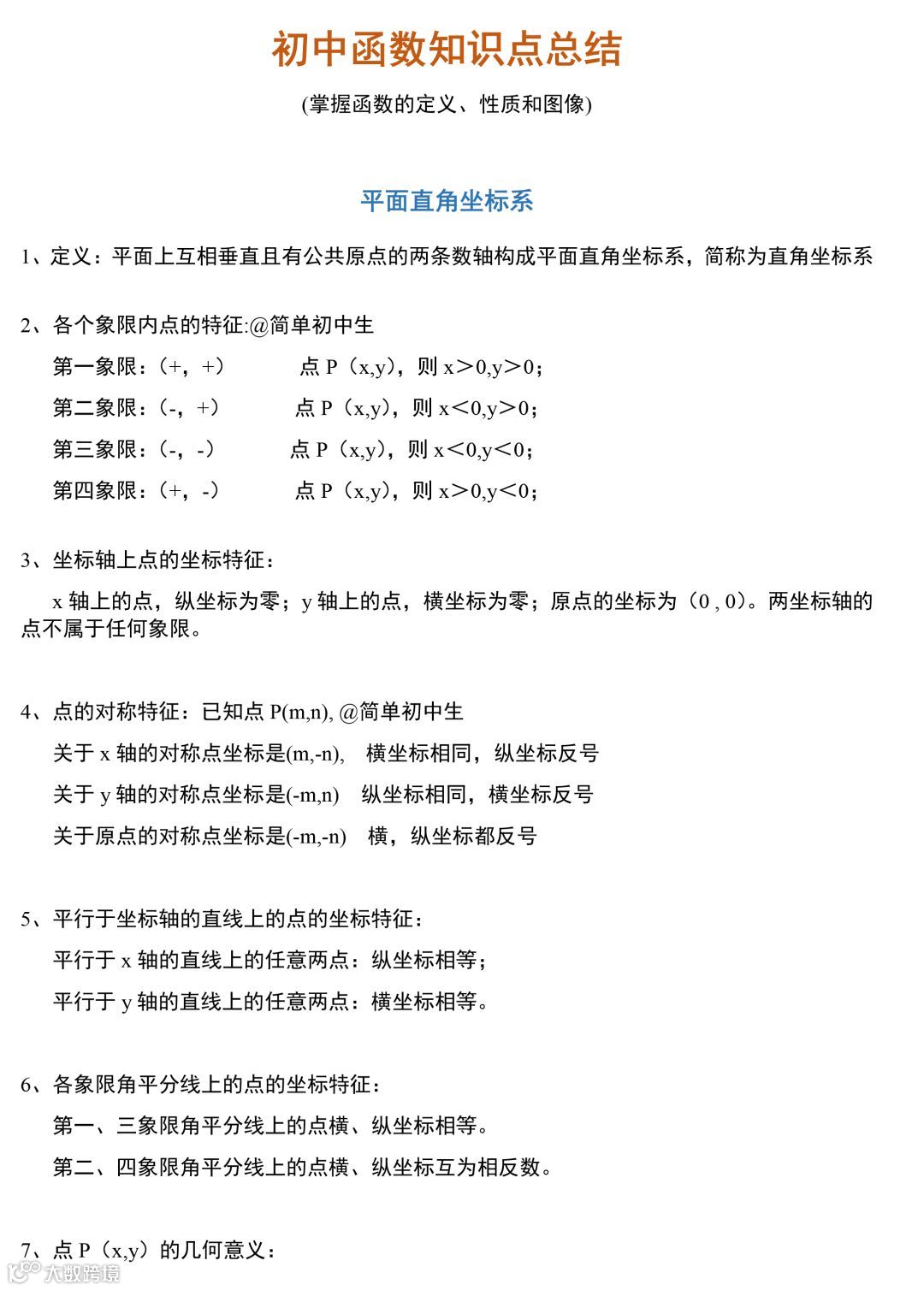 初中函数知识点集合,复习预习都好用!