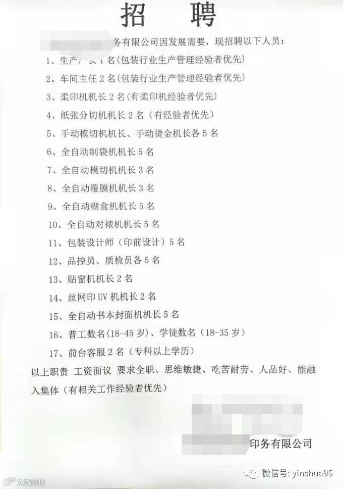 在印业网微社区看到一张招聘广告