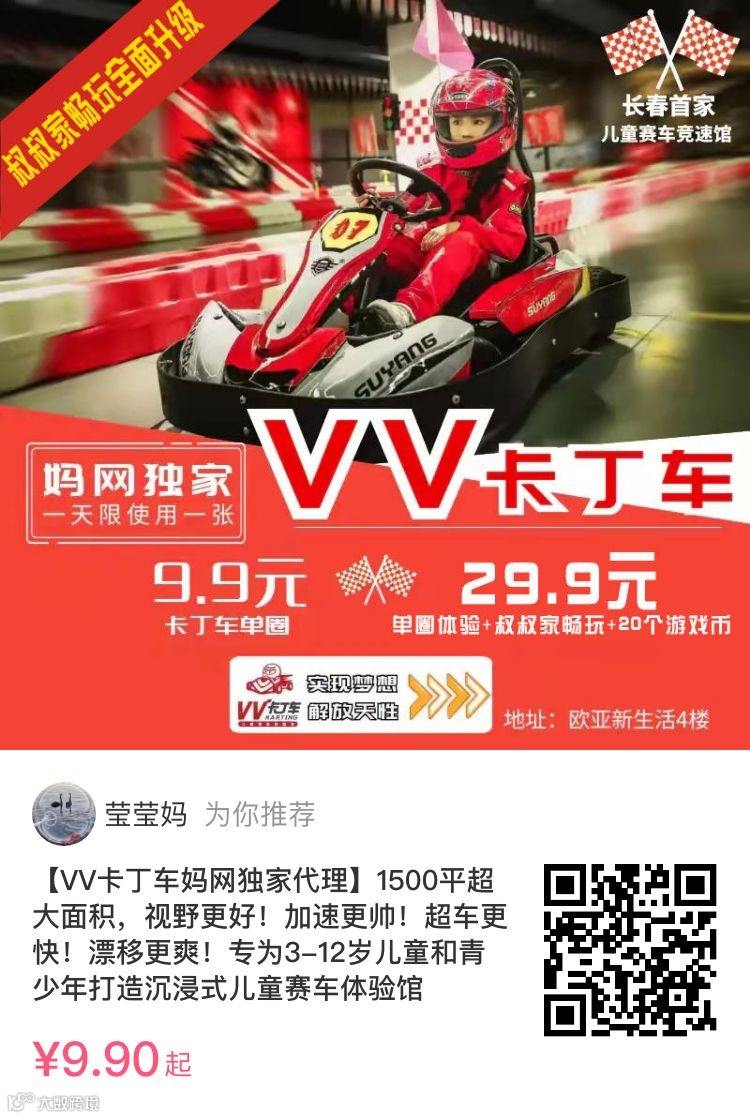 VV卡丁车体验馆是专为3-12岁儿童和青少年打造的一个赛车竞速体验项目。