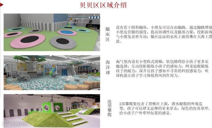 通过跑、跳、钻、爬、滑结合天性而设计的游乐设施,锻炼孩子左右脑发育、速度、力量、平衡等全面发展。