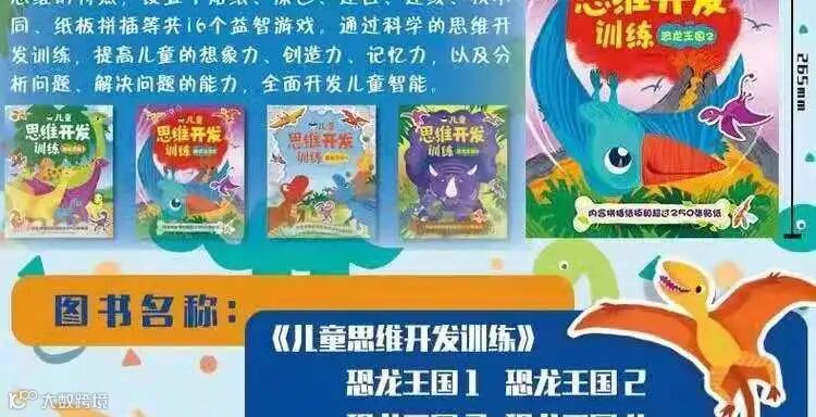【欧洲引进】儿童思维开发训练,恐龙王系列4册,幼儿益智游戏贴纸书,培养动手能力、观察想象、创造记忆力……