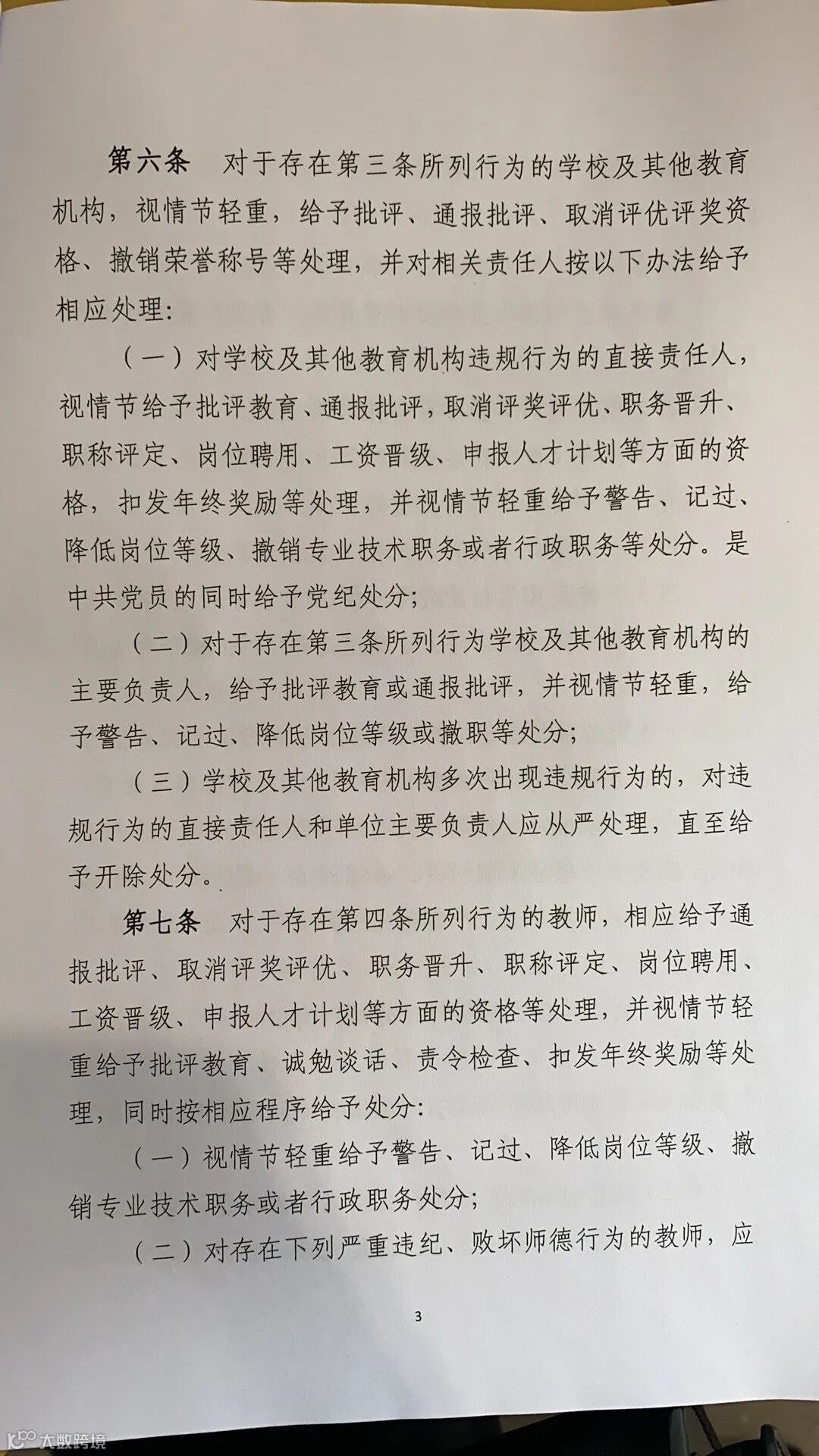 3.对于违规组织或参与有偿补课行为的学校的处理办法;