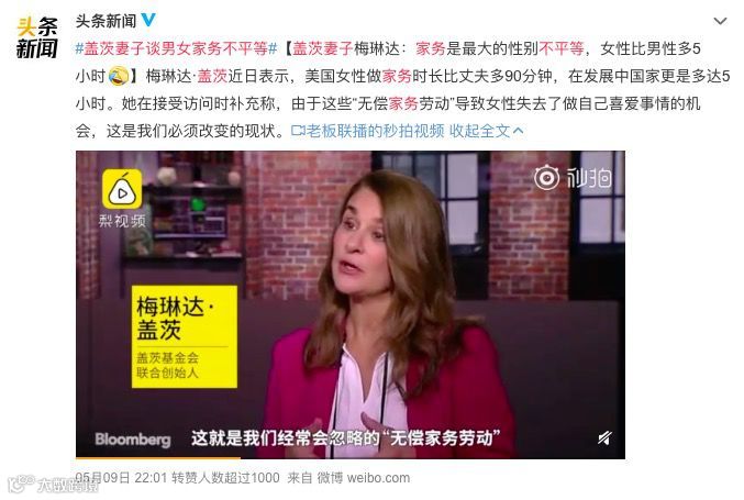 比尔·盖茨的妻子梅琳达曾表示,美国女性做家务时长比丈夫多90分钟,在发展中国家更是多达5小时。