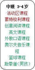 活动区课程以“儿童为中心”,尊重“儿童自主发展”。营造温馨、和谐、符合身心发展规律的自主选择区域环境,活动区由生活区、语言区、科学区、美工区、建构区、表演区、感官区构成。儿童根据自己的计划和兴趣选择操作材料,材料由蒙特梭利教具和涵盖《纲要》、《指南》及幼小衔接课程目标的材料构成。儿童在操作和摆弄的过程中建构思维,形成良好的学习品质。