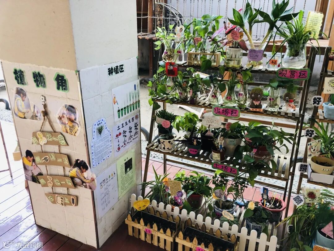 各班自然角种类丰富,植物陈列错落有致,区域设置分明,开放式的环境,吸引着每一位孩子去快乐的发现和探索。