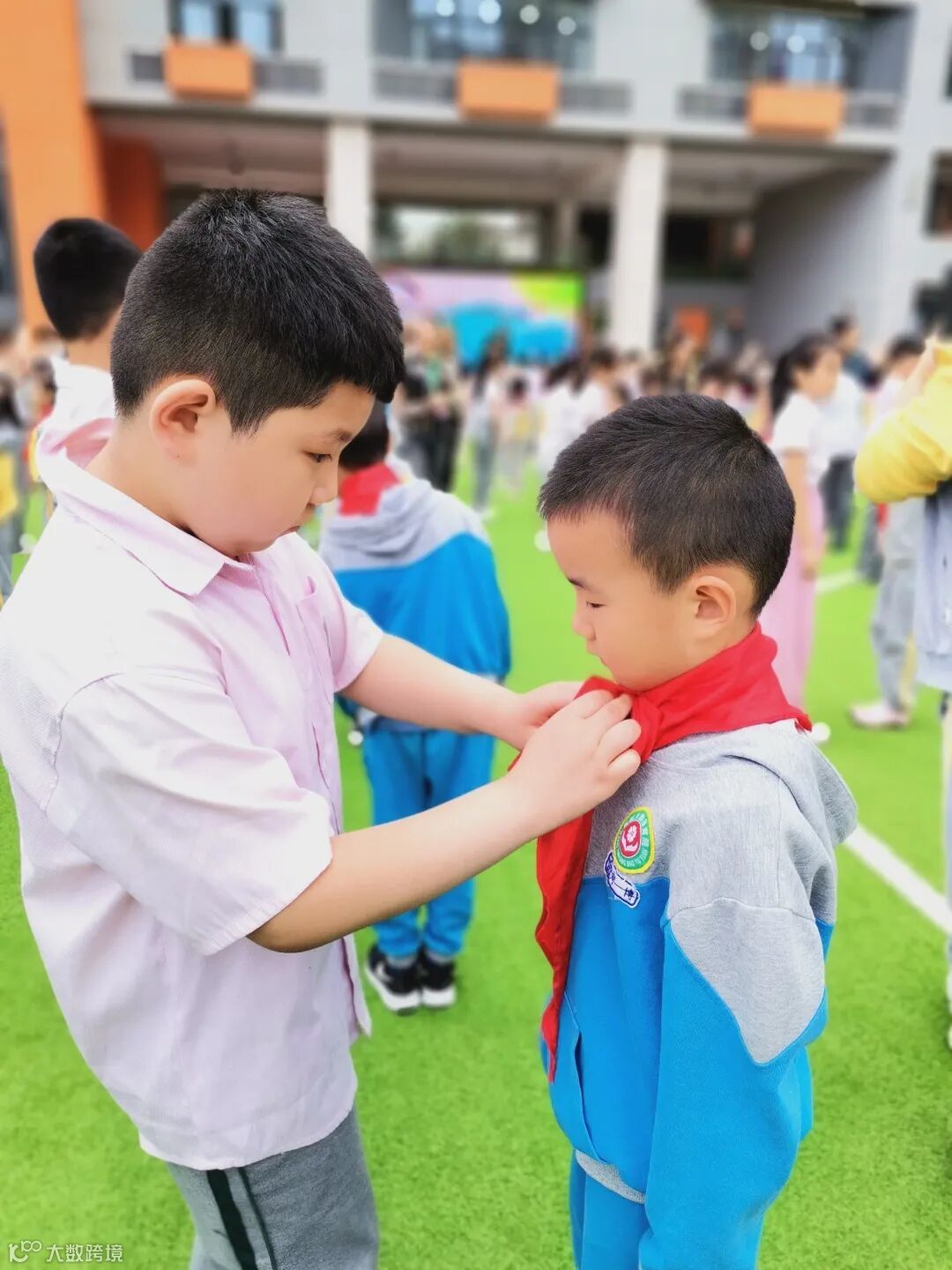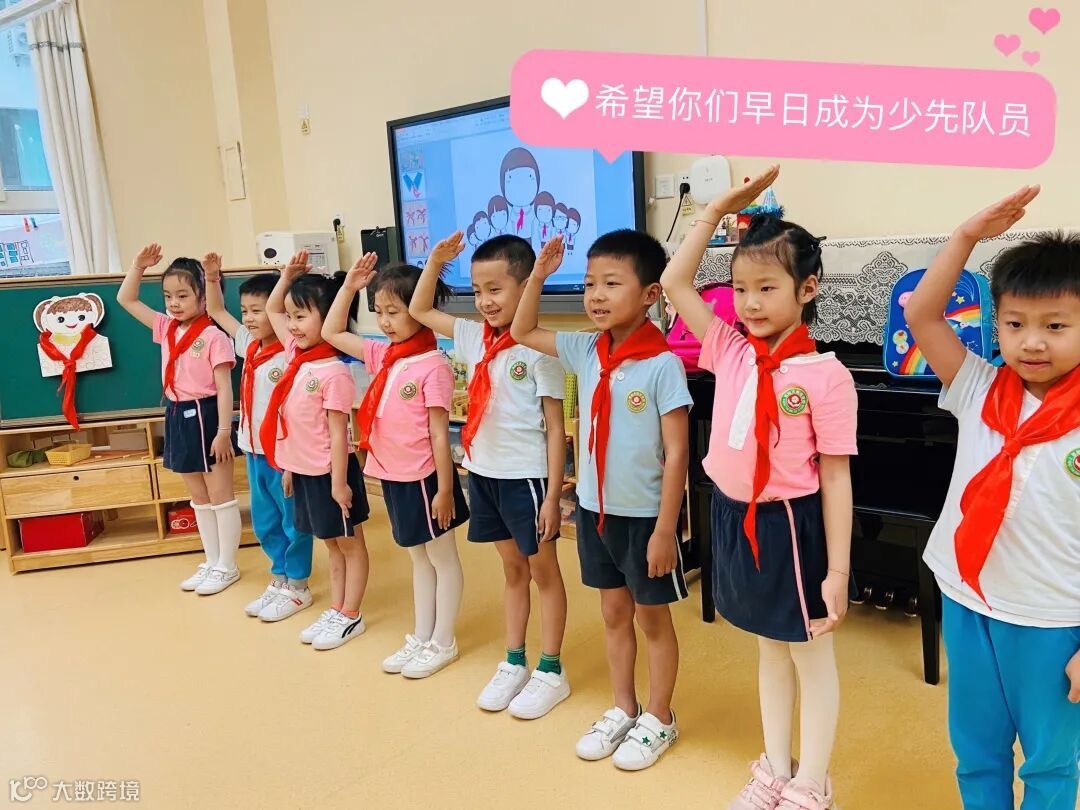 成为一名少先队员,是小朋友们的梦想。在接下来的感受环节中,三年级的哥哥姐姐们为小朋友们戴上了红领巾,教他们敬队礼。孩子们的敬礼有模有样,仿佛成为了真正小学生!