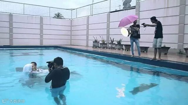 新郎新娘泡水的话,摄影师绝对也轻松不了