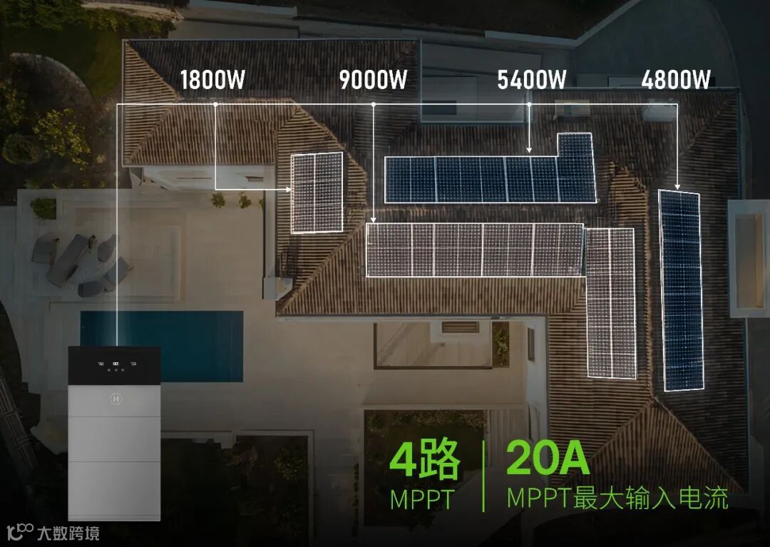 面对欧洲住宅屋顶朝向各异、局部阴影遮挡等复杂挑战,HiOne采用最多4路独立MPPT设计,从根本上破解了光伏系统中的“木桶效应”。这相当于为屋顶上不同朝向或易受阴影影响的光伏组件,分别配备了专属的“效率优化师”。