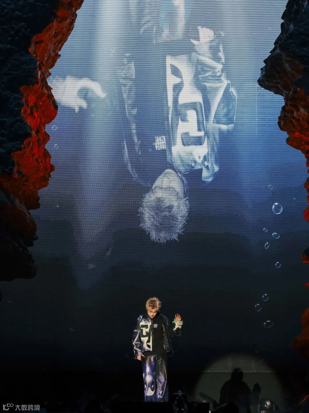 骨冠是代表承载着我的荣誉,也就像“猪”一样都是非常代表我的东西,骨冠的创造是从第二张专辑后面开始的,慢慢的形成了一个属于我的IP。我在使用佩戴骨冠的时候,就代表着我的完全体出现,同时也是希望骨冠这个标志意向可以一直陪我走很远。“枪火天使化的宝石”,前面已经说了最后一首歌中的枪声,寓意着枪火时代的结束,它会变成宝石镶嵌在我的骨冠上,所以在未来,我的骨冠上可能会有更多的视觉符号。“黑色潮水”其实就是代表着痛苦悲痛的那些经历,在枪火的世界中,他们在歌词中变成了像boss一样的生物。