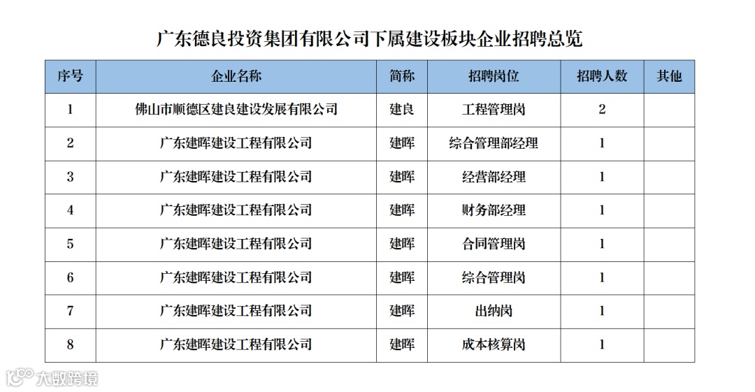德良集团及下属建设板块企业因业务发展需要,现公开招聘以下岗位工作人员,有关事项如下: