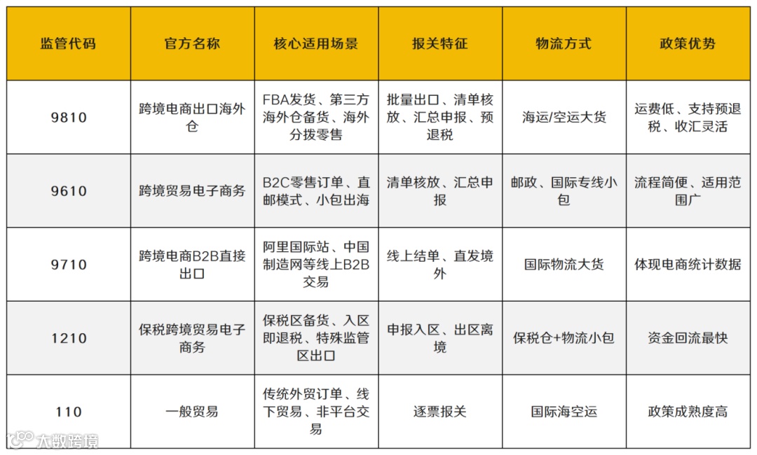 表1:为了协助企业精准选择清关路径,下表详细对比了跨境电商主流监管代码的适用场景与政策红利。