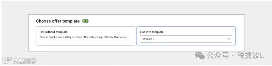 在页面底部找到「选择报价模板(Choose offer template)」板块,点击选择「通过模板发布(List with template)」;