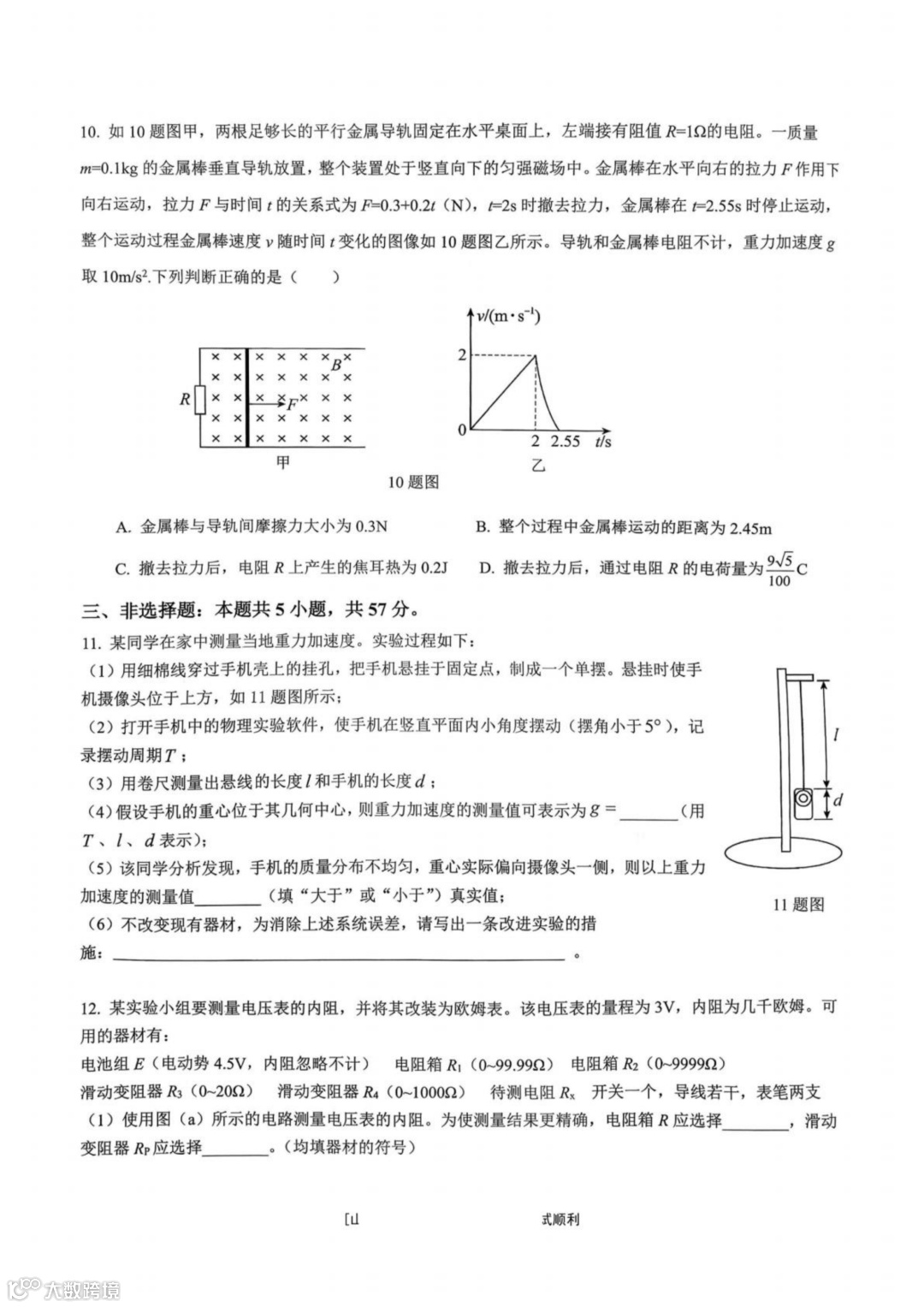 作者寄语:重庆育才中学2026届高三下学期学情自测物理试卷+答案,7天有效领取,手慢无!!!