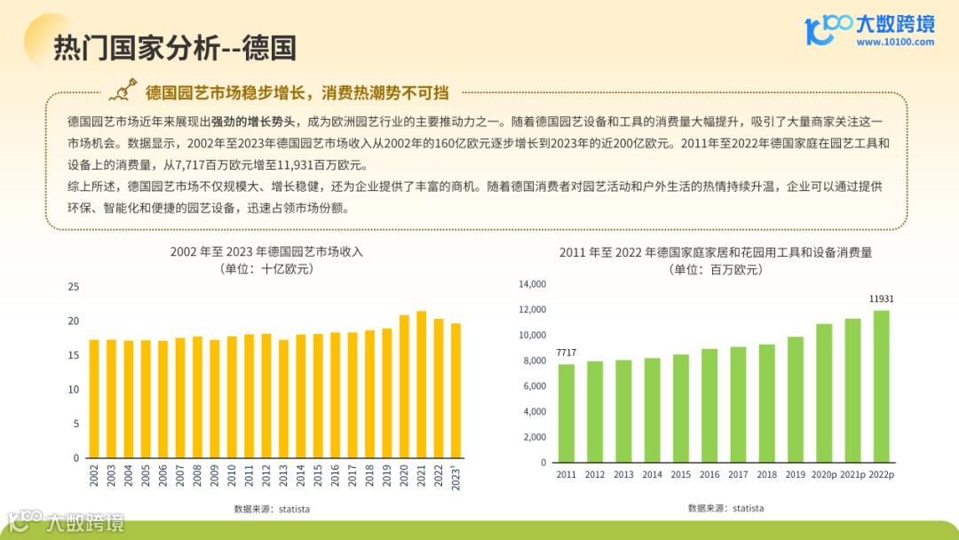 本部分主要从市场概况、电商概况、产品分类对园艺工具进行分析。想要获取全部内容,可以关注【大数跨境】公众号,回复【2024全球园艺工具市场洞察报告】免费下载原报告,查看完整版。