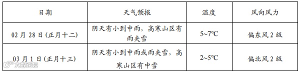 预计2月25日夜间、2月28日至3月1日分别有一次雨雪天气过程。