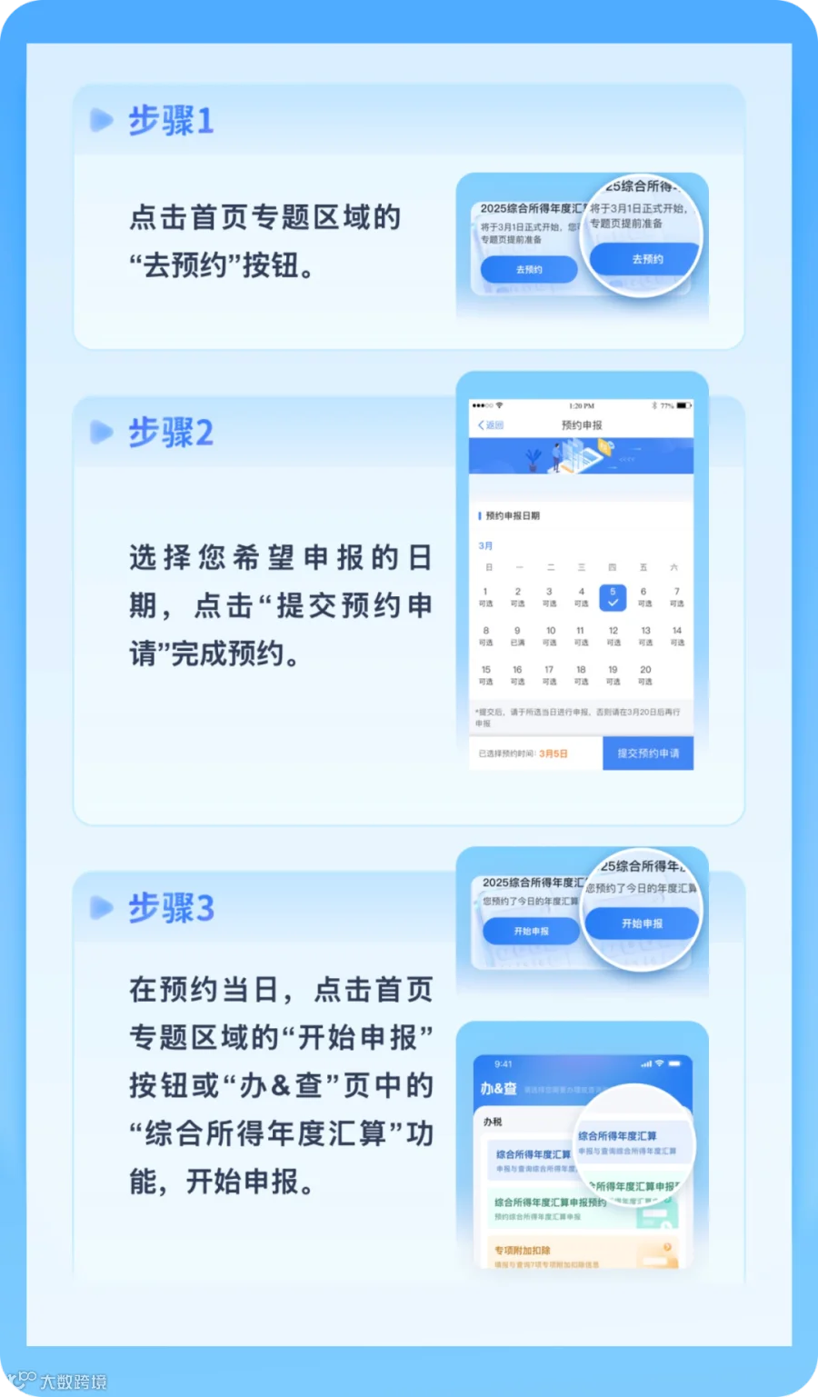 纳税人需在3月1日至3月20日期间办理的,可以自2月25日起通过个人所得税App提前预约;3月21日至6月30日期间,纳税人无需预约,可以随时办理。