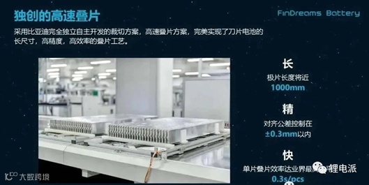 叠片工艺要求极片分切精度高、堆叠对齐精准。比亚迪实现0.3秒/片的叠片速度,达到行业领先水平,有效提升生产效率与产品一致性。