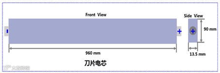 刀片电池单体电芯尺寸为:长度960mm,厚度13.5mm,高度90mm,采用叠片式内部结构。比亚迪借鉴蜂窝铝板结构原理,通过结构胶将电芯固定于两层铝板之间,使电芯本身成为结构件,显著提升电池包整体强度和抗变形能力。
